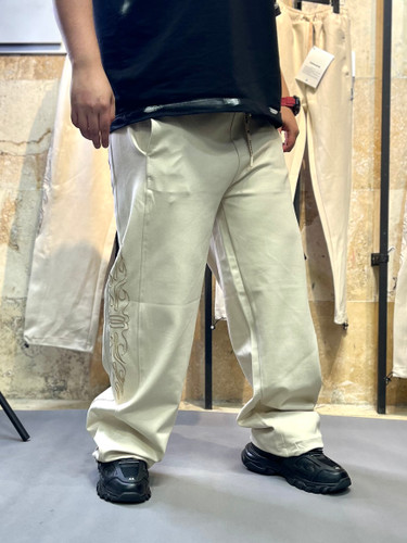 اسلش بگ مردانه شلوار اسلش کرم گلدوزی دار وارداتی