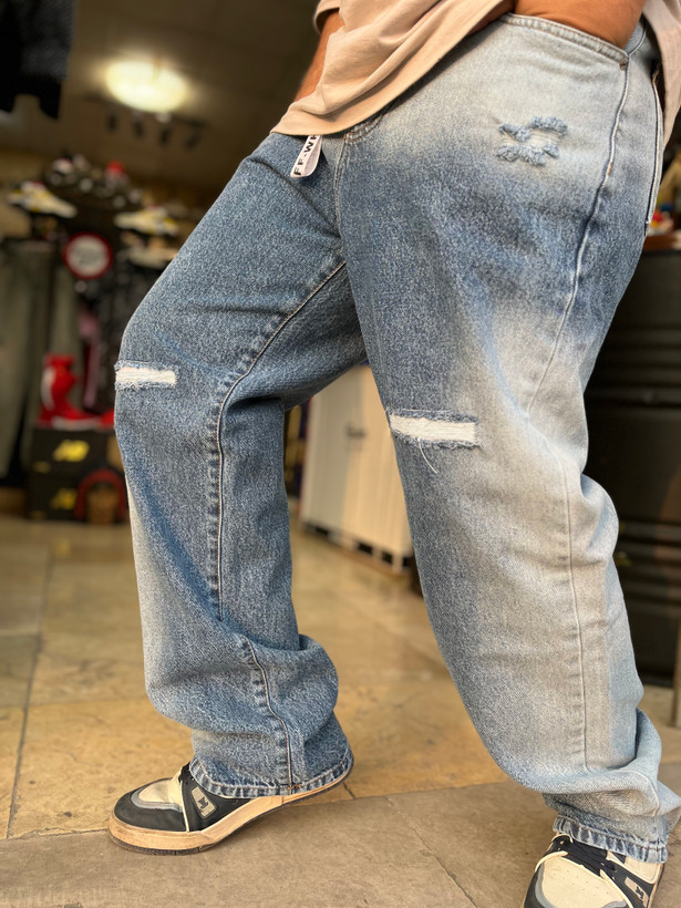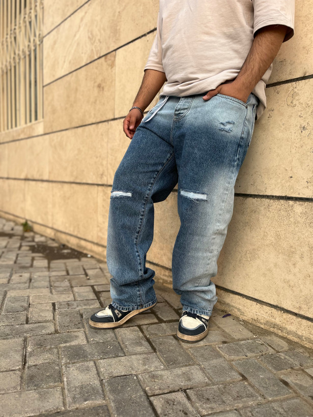 شلوار لی بگ مردانه شست جدید آبی کد۱۳۴۰