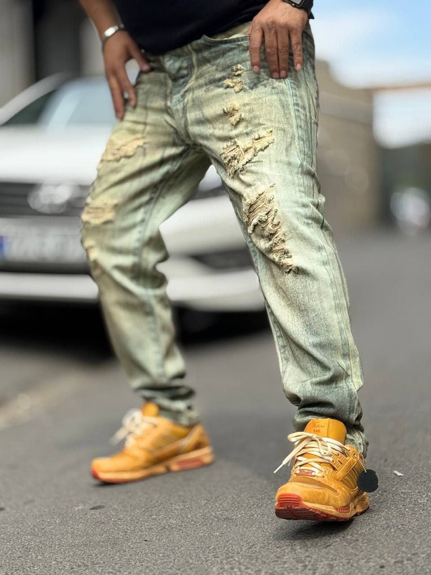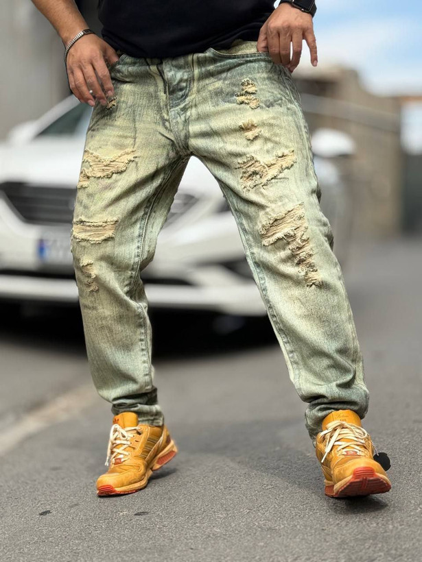 شلوار لی مامفیت مردانه کاستوم شده رنگ سال بلوگرین